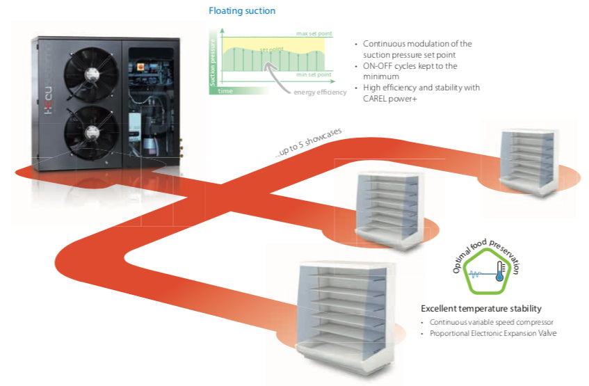 Hecu sistema is the CAREL solution designed specifically for convenience stores. Increasing attention to energy efficiency, in other words lower environmental impact and lower running costs, makes the CAREL solution the perfect response to market needs. Hecu sistema ensures that the condensing units adopting this technology achieve maximum results in terms of energy classification.